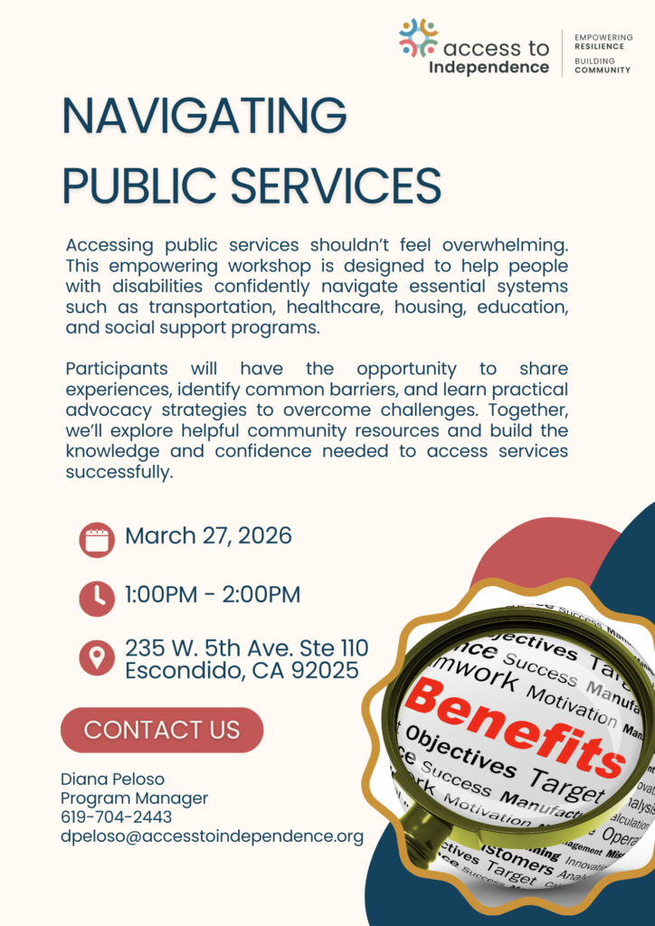 Accessing public services shouldn’t feel overwhelming. This empowering workshop is designed to help people with disabilities confidently navigate essential systems such as transportation, healthcare, housing, education, and social support programs.